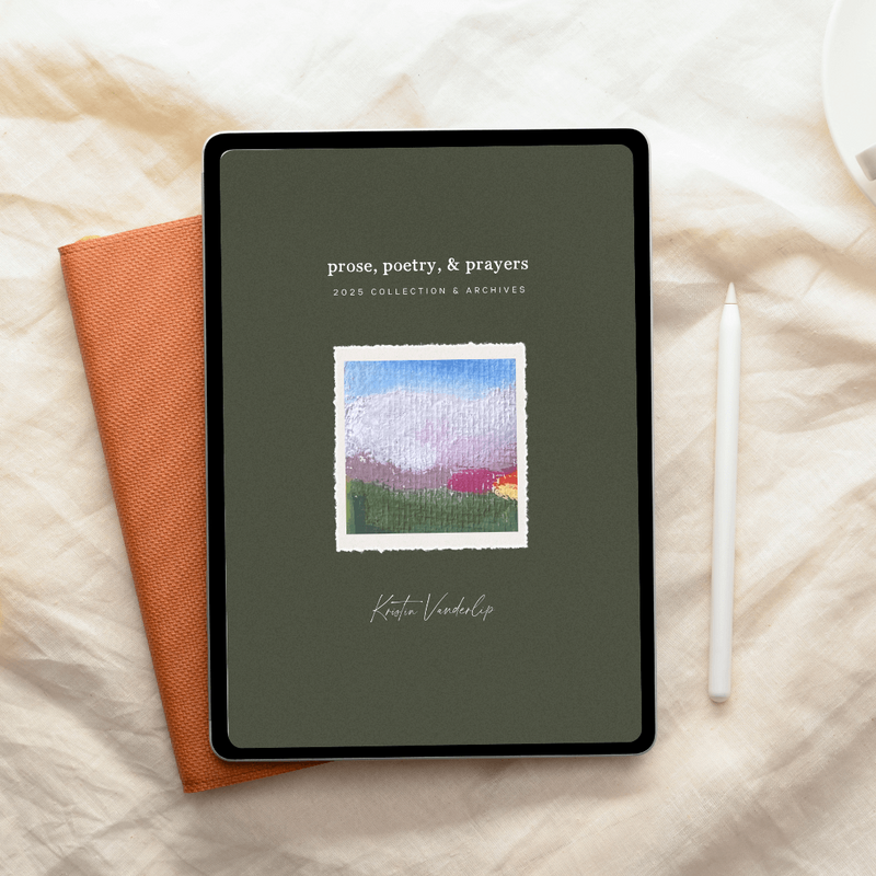 In Prose, Poetry & Prayers, Kristin Vanderlip gathers pieces of her writing shaped by heartache, longing, healing, and the pursuit of hope.