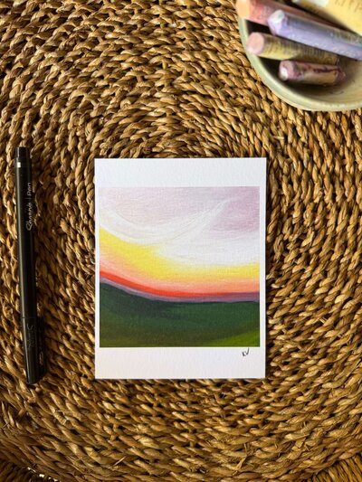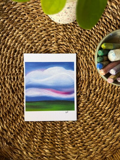 These limited-edition prints feature original oil pastel paintings by Kristin, printed on thick, textured, uncoated hemp paper that holds the softness and depth of the original artwork.